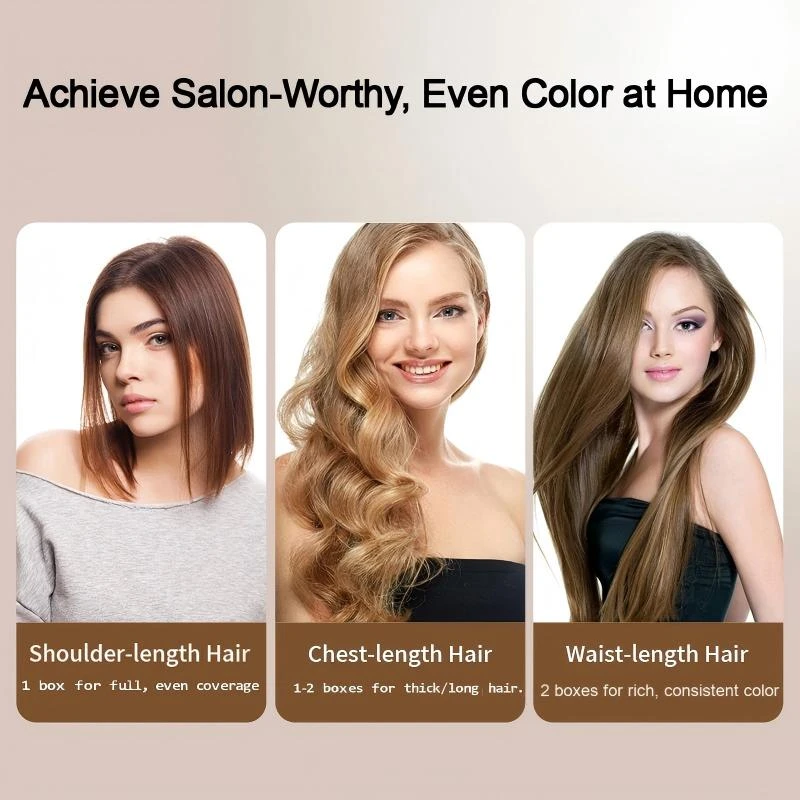 Our hair dye shampoos are infused with Polygonum Multiflorum and Ginger Root, which deeply nourish your hair from root to tip. This gentle formula delivers vibrant color while leaving your hair soft, shiny, and healthy – no dryness, no damage. We believe healthy hair starts with gentle care. That’s why every product is designed to nourish your hair while delivering salon-worthy results, right in the comfort of your own bathroom.